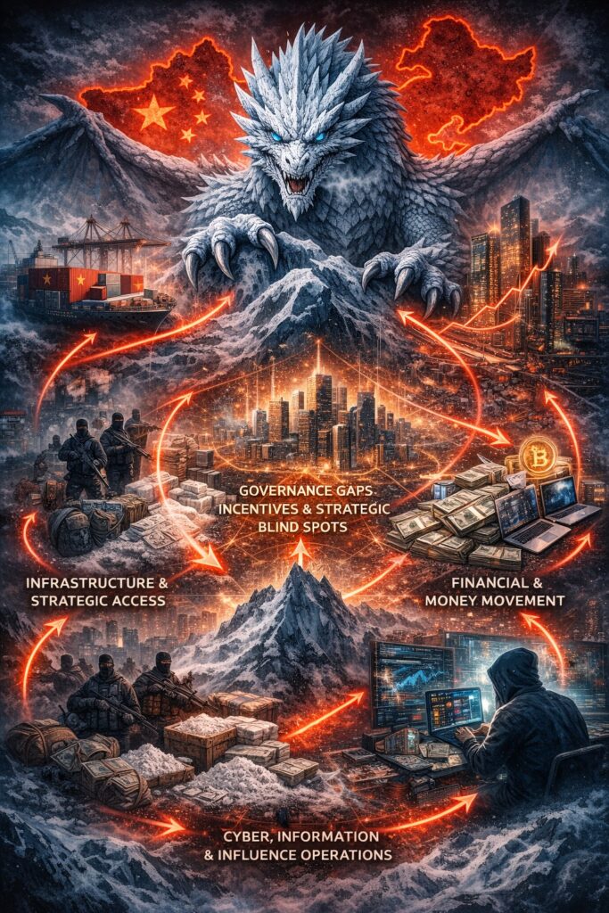 The convergence outlined here does not point to a single actor pulling strings behind the scenes. It points to something more complex—and potentially more consequential. A world in which global influence, economic expansion, and illicit networks are no longer separate domains, but overlapping systems shaped by shared infrastructure, shared incentives, and shared blind spots.